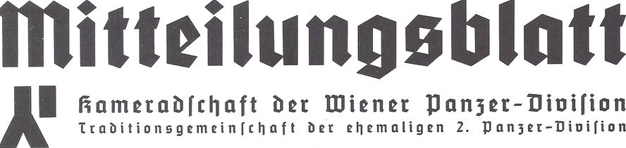 Inside this section you will find copies of the 2nd Panzer Veterans newsletter entitled "Mitteilungsblatt." Over time, this section will include translations of the stories inside, as well as scans of the newsletters themselves. We are always on the lookout for issues that are missing. Currently we are searching for: